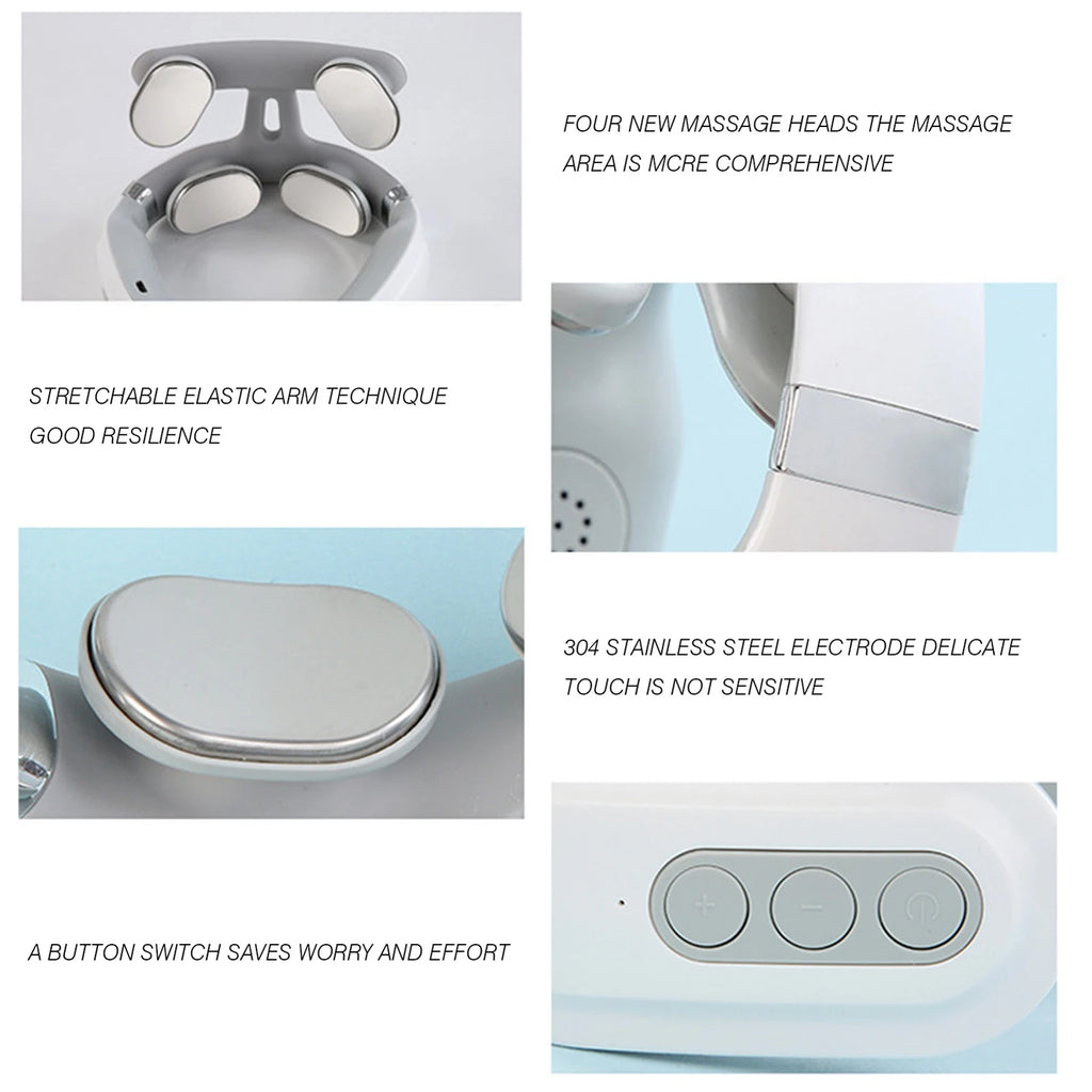Massageador Cervical com 16 Modos, Aquecimento Inteligente por Pulso USB, Massageador para Pescoço e Cabeça com 4 Pontos de Pressão para Alívio da Tensão no Pescoço