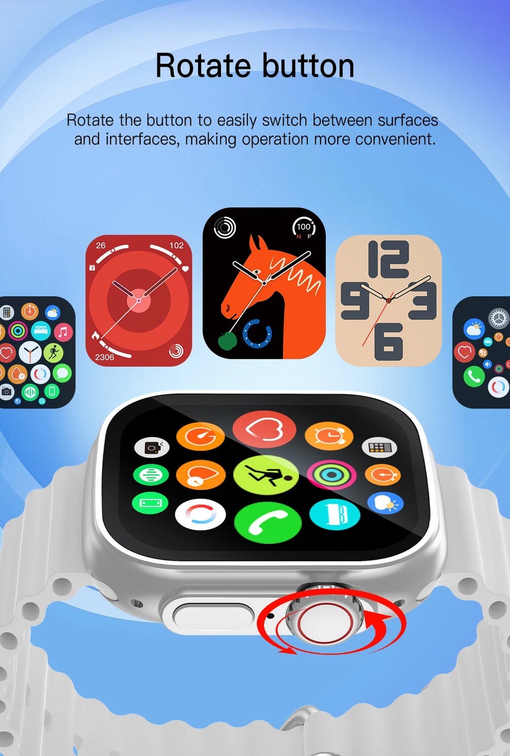 Modo Esportivo: Diversas modalidades esportivas, modo "Não Perturbe" e troca de mostradores (Multi-Dial).